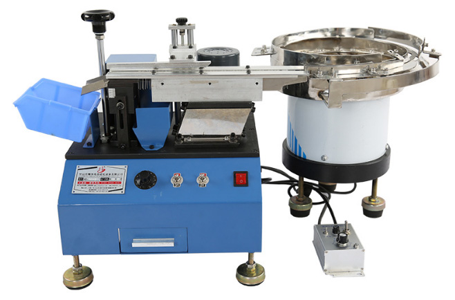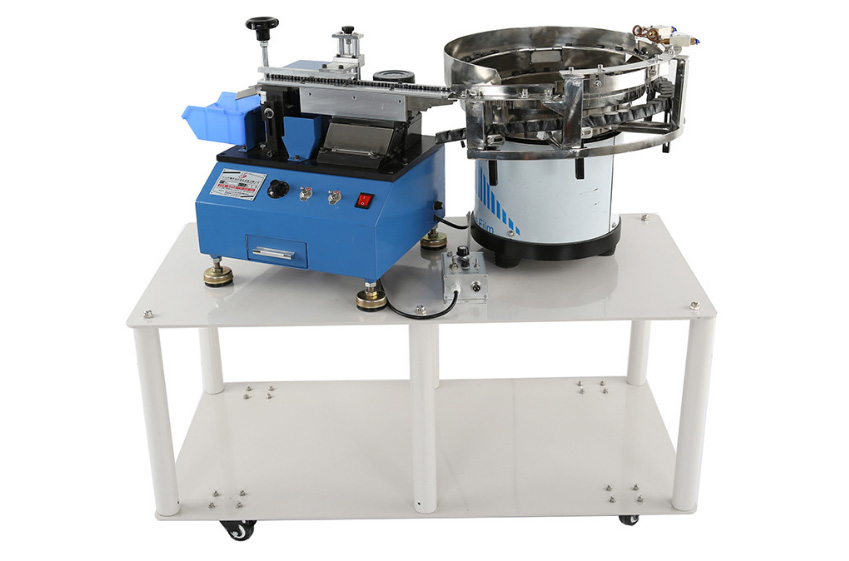 ◆ 此機種加裝可調高軌道的震動盤送料器,震動盤組的輸送軌道可調整寬度以便適用于不同規格零件之送料,使其適用于生產線對多種規格需大量剪腳加工的需求。