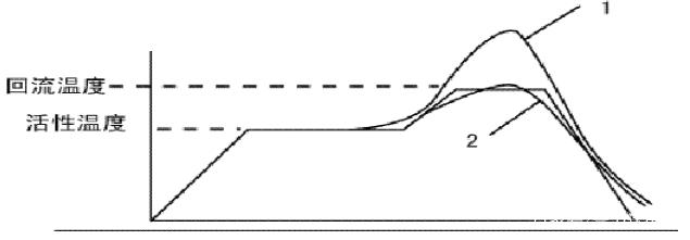 圖7中曲線1所不的溫度曲線表明回流溫度過(guò)咼,易造成PCB以及兀器件損傷,應(yīng)降低回流區(qū)溫度,而曲線2所示的溫度表明回流溫度過(guò)低。此時(shí)焊料雖已熔化,但流動(dòng)性差。焊料不能充分潤(rùn)濕,故易引起虛焊或冷焊。