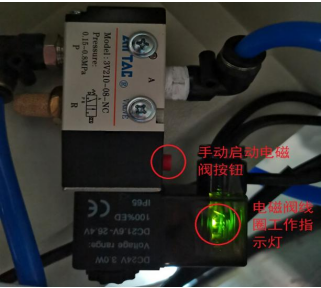 解決辦法:開啟手動噴霧后,電磁閥線圈會供電亮燈,首先檢查電磁閥24V直流供電是否正常,無供電需要查看圖紙檢查繼電器或PLC輸出。供電正常電磁閥不工作則更換電磁閥或電磁閥線圈
