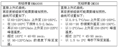 愛(ài)法有鉛焊膏 RMA9086 與無(wú)鉛焊膏 OM338 推薦回流曲線: