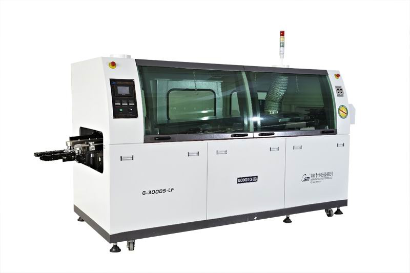 波峰焊機主要是對插件的電子元器件插在電子線路板后進行焊錫焊接。在表面安裝技術(SMT)中印刷板的雙波峰焊接及表面元件(SMC)電路板的單波峰焊接工藝中,均需應用液態釬料的波峰焊機。主要是指將熔化的軟釬焊料,經電動泵或電磁泵噴流成設計要求的焊料波峰,亦可通過向焊料池注入氮氣來形成,使預先裝有元器件的印制板通過焊料波峰,實現元器件焊端或引腳與印制板焊盤之間機械與電氣連接的軟釬焊。根據機器所使用不同幾何形狀的波峰。
