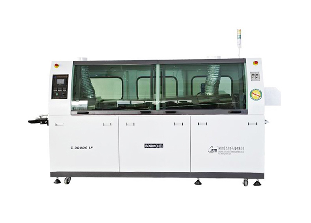 波峰焊機基本上是熱輻射預熱的。波峰焊常用的方法有強制熱風對流、電熱板對流、電熱棒加熱和紅外線加熱。在這些方法中,強制熱風對流通常被認為是一種有效的波峰焊傳熱方法。電路板預熱后焊接單波(λ波)或雙波(湍流波和λ波)。對于穿孔部分,一個波就足夠了。當電路板進入波形時,焊料流向與電路板相反,在元件引腳周圍產生渦流。這是一種電刷,它可以去除電刷上所有的殘留助焊劑和氧化膜,并在焊點達到潤濕溫度時形成潤濕。