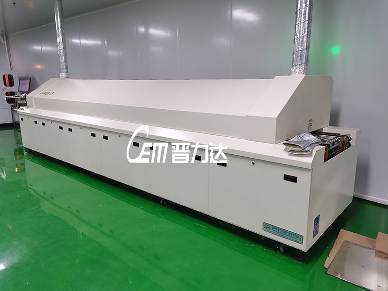 旗下大陸子公司研創(chuàng)科技(惠州)有限公司從2017年開始陸續(xù)采購我司晉力達三臺八溫區(qū)回流焊,用于晶體振蕩器烤膠固化用,我們根據(jù)客戶的要求定制固化時間為1-2小時的可調(diào)節(jié)傳動速度。